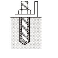 下穴に固着剤を入れ、ケミカル用長ねじなどをドリルで回転させて打込むと、化学変化によって硬化し、長ねじが固着します。引抜き強度のバラツキが少なく、耐震性、耐薬品性、耐食性に優れた接着力が得られます。変質、老化の心配がありません。海水中でも使えます。接着系アンカーで強度が必要な場所に使用します。