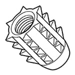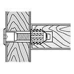 木工用埋込みナットです。締結する相手材料、部材の強度が低く、木ねじでは十分な締付け強度が得られない場合に使用します。下穴に打込むだけでボルトが使える締付け強度が得られる上、反復使用できます。