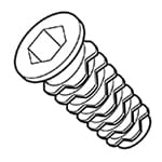 特徴 : 外周はテーパねじになっており挿入抵抗が少なく、割れを防いで無理なく真直ぐにねじ込めます。独立したねじ山と切欠き溝が木部に食込むので、戻りやゆるみの心配は不要です。ツバが平座金の機能を備え、軟材の場合や部材をはさんで締付ける場合に適しています。材質は亜鉛合金ダイカストで三価クロメートめっきがしてあります。