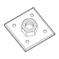 材質は鉄で三価クロメートめっき。アジャスターボルトと組み合わせて木製フェンスなどの高さ調節に使用。