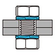 特徴 : 内側にクサビ形状、外側には放射状リブが付いた座金を2枚セットで使います。締付けるとリブが相手部材やボルトに食込み、ボルト・ナットのゆるみはクサビの作用効果で吸収されます。ゆるめる力が働くと、締付け力は逆に一時的に増大するからです。再使用もできます。材質は炭素鋼でデルタプロテクト処理品です。