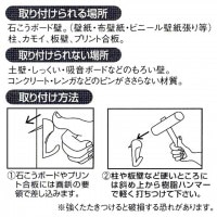 □用 途 : 額や温度計などの壁掛けとして使用。石膏ボード壁、木製の柱、鴨居、板壁、プリント合板などに取り付け可能。