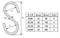 ステンレスSフック 4×150 [10本]