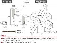 仮止めの爪が付いていますので、高所作業を安全に効率よく行えます。たる木と桁、母屋の緊結に使用するくぎによる、たる木止め金物です。使用接合具は太めくぎZN-40(4本)。