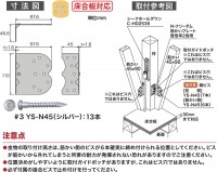材質はNFG550F。表面処理は亜鉛めっき。使用ビスを1種類に統一したことで格段に作業効率が向上します。施工時の位置決めがしやすいようにガイド用のポッチを付けました。(金物を外側で筋かいと止め付ける場合)。壁倍率2倍の筋かい(45X90mm)に使用できる筋かい止め金物です。厚さが30mmまでの合板の上からでも施工ができ、土台材へのビスの止め付けが不要です。また、金物本体を内使いする事でアンカーボルト、ホールダウン金物との干渉もなく施工できます。