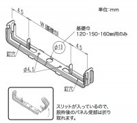 スリッドが入っているので、脱枠後のパネル受部は折り取れます。中央にφ13穴が空いているので、アンカーボルトを設置することができます。鋼製型枠の巾決め定番セパレーターです。(型枠巾45mm用)。
