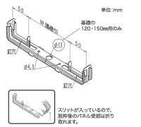 スリッドが入っているので、脱枠後のパネル受部は折り取れます。中央にφ13穴が空いているので、アンカーボルトを設置することができます。鋼製型枠の巾決め定番セパレーターです。(型枠巾50mm用)。