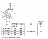 トップ > キャスター > ねじ式キャスター > キャスター 自在 ゴム車輪 ストッパー付 W3/8 (差し込みタイプ) 415A-R75 [4個]
