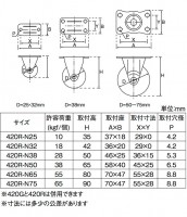 トップ > キャスター > プレート式キャスター > キャスター 固定 ナイロン車輪 (プレートタイプ) 420R-N32 [20個]