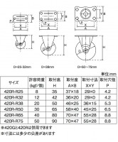 キャスター 自在 ゴム車輪 (プレートタイプ) 420G-R75 [4個]