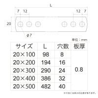 補助金具・隅金 > 補助金具・ステー > I 型(ステー・チドリ・プレート・たんざく) > ステンレス 曲板 (7mm穴) 20×200 [10個]