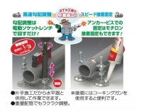 ソケットレンチで簡単に高さ調整が出来るレベルバンドです。ベースプレートが樹脂なので簡単にカット出来、壁際配管も楽に施工できます。アンカー・ビス固定以外にもベースプレートは接着も可能です。ボルトの取替えも可能です。配水管のレベル調整支持金具です。
