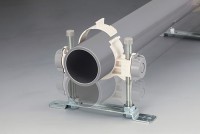 工具なしで高さ調整ができるレベルバンドです。管の固定もワンプッシュで出来ます。左右のロックナットをまわして固定解除、高さ調整後、ロックナットをまわして固定。配管バンドを上下逆にする事で天井は配管に対応します。ボルトの取替えも可能です。配水管のレベル調整支持金具です。