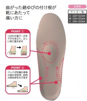 そこで、親ゆびから小ゆびのつけ根あたりにかかる「横アーチ」を支えるパッドを配置。