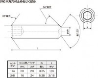 トップ > ねじ・ボルト【箱売】 > ホーロ・止めねじ【箱売】 > ホーロ・止めねじ くぼみ先【箱売】 > (W)六角穴付止めねじ くぼみ ホーロー インチねじ【1本単価がお得!箱売】