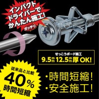 石こうボードの壁にエアコンを取り付ける為に生まれた専用アンカー! 3ステップでエアコンの取り付けが出来る為、作業時間短縮と安全施工を実現! 従来品と比較して40%時間短縮!