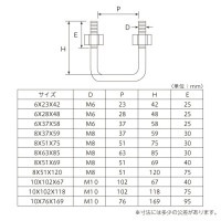 ■材質 : 鉄・■表面処理 : ユニクロめっき。配管を構造物に固定するときに使用。ナット2個付。■サイズ : 6・8・10はネジの呼び径、3/4,1/2,1はコノ字の内寸インチになります。それ以外は内寸x高さを表しています。詳細はサイズ表をご確認ください。