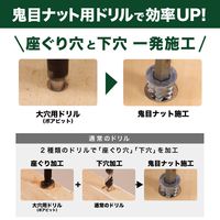 ・木材に鬼目ナットを取り付ける際に使 用します。座ぐりパーツを取り外すこ とでツバ無しタイプにも対応します。